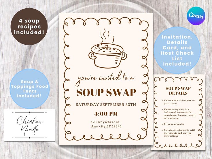 This Soup Swap Party bundle from Etsy is so cute & conveniently includes everything you need!