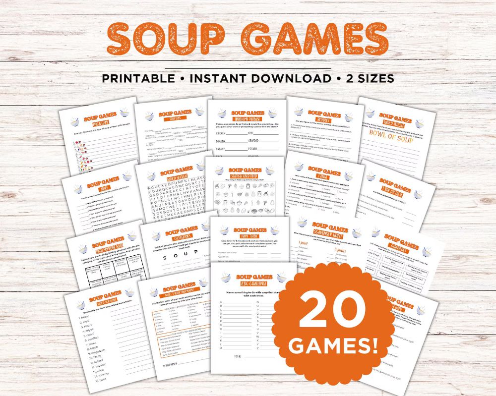 - Soup themed games like these printables from Etsy